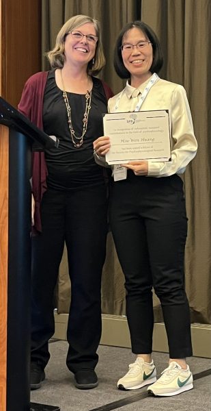Dr. Hsu-Wen Huang has been dedicated to interdisciplinary research in psychophysiology, integrating perspectives from cognitive neuroscience, social science, aging, mental health, and psycholinguistics. In recognition of outstanding contributions and international impact in this field, Dr. Huang has been named a Fellow of the Society for Psychophysiological Research (SPR) for 2025, currently the only recipient from Asia.